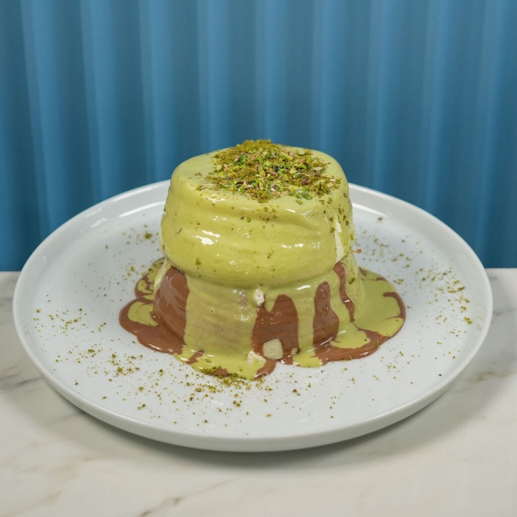 Puufu Antep fıstığı kreması, sütlü Belçika çikolatası ve Antep fıstığı parçaları